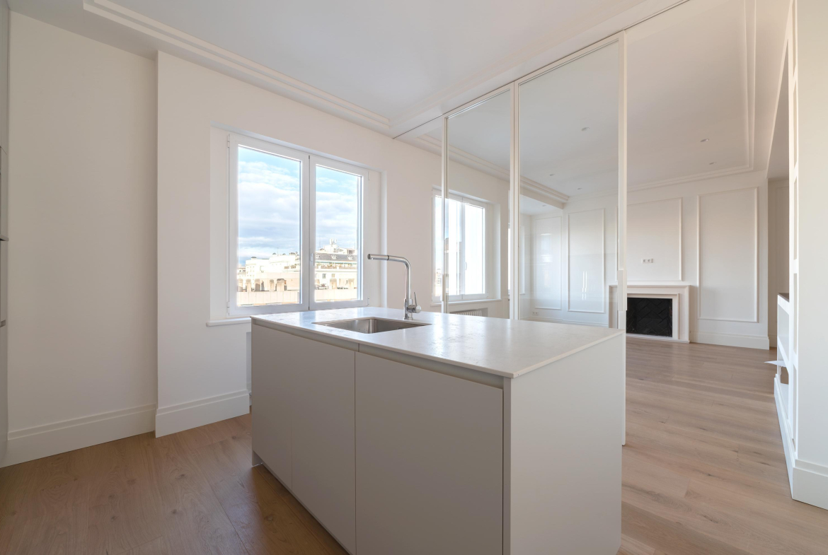 Vivienda de tres habitaciones completamente reformada con calidades de lujo, diseñada para disfrutar del confort y la elegancia en cada detalle. La abundante luz natural recorre todas las estancias, realzando los espacios y creando una atmósfera cálida y acogedora durante todo el día. Las puertas de madera maciza aportan carácter y solidez, mientras que el suelo de roble natural envuelve la vivienda con una sensación de nobleza y continuidad. Una propiedad cuidada con mimo, donde el diseño, los materiales y la luminosidad se combinan para crear un hogar sofisticado y atemporal.
